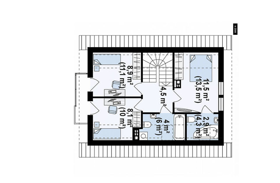 Powierzchnia wszystkich pomieszczeń z włączeniem pomieszczenia technicznego, garażu, pomieszczenia gospodarczego, strychu. Przy obmiarach nie uwzględnia się tyków i okładzin ściennych.